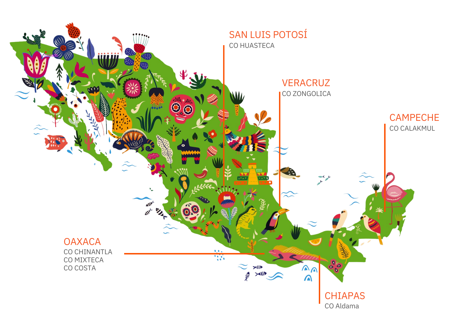 - 5 estados de la República Mexicana